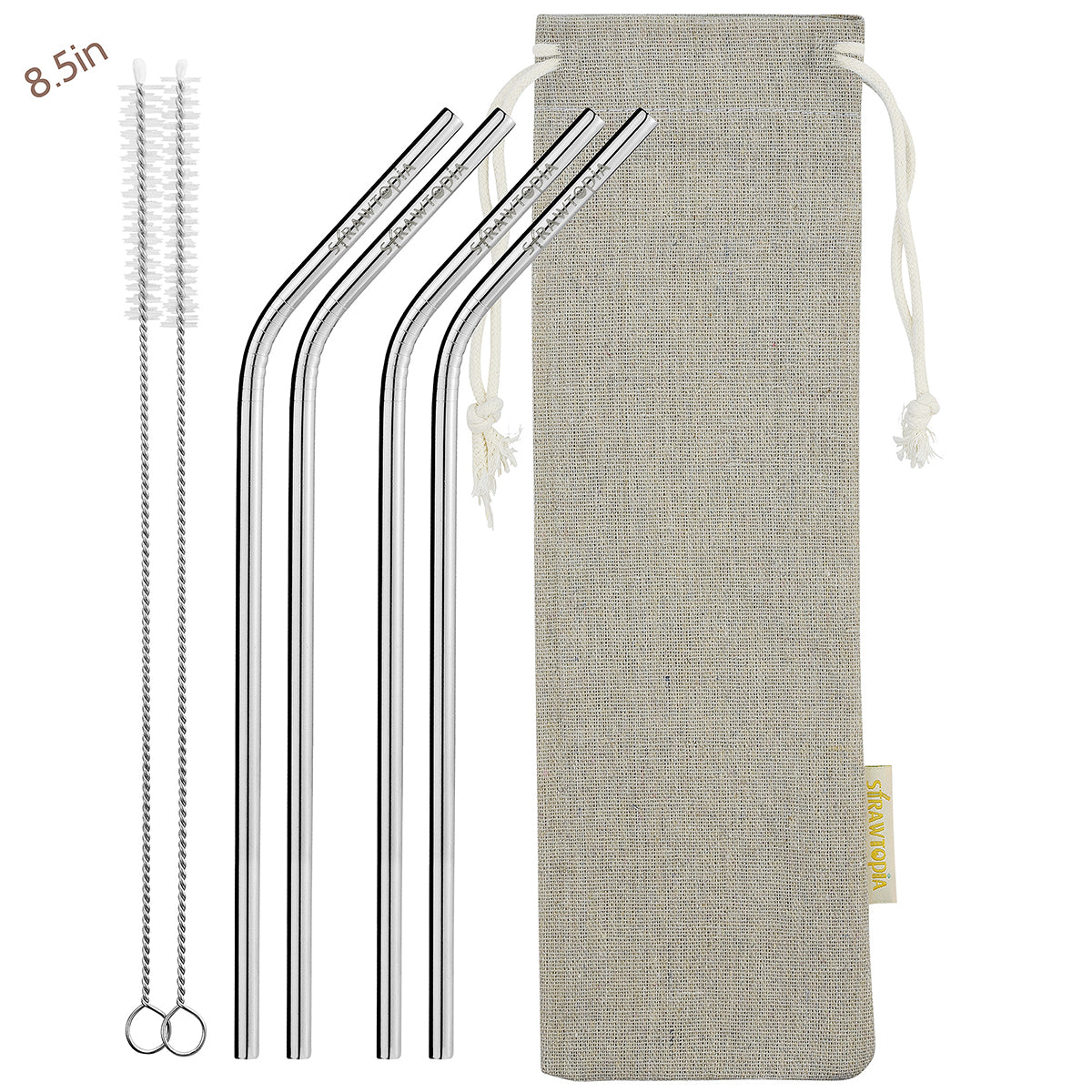 - 2 Bendy (8.5 inches) Reusable Stainless Steel Metal Straws with Cleaning Brushes — STRAWTOPIA