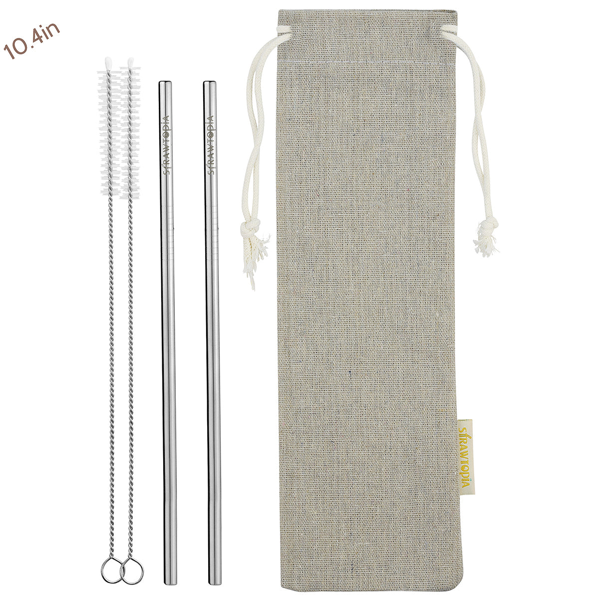 - 2 Straight (10.4 inches) Reusable Stainless Steel Metal Straws with Cleaning Brushes — STRAWTOPIA