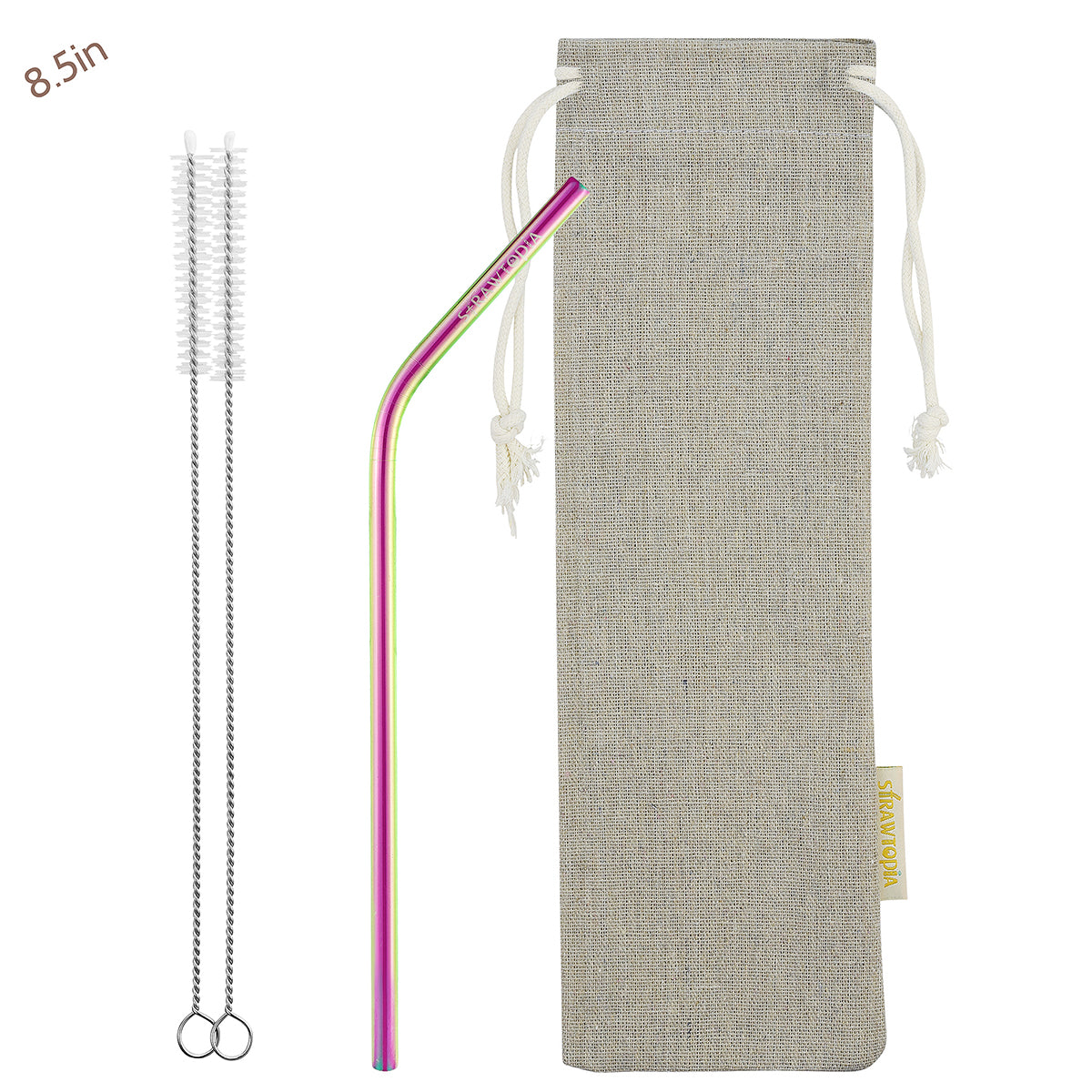 - 2 Bendy (8.5 inches) Rainbow Reusable Metal Straws with Cleaning Brushes — STRAWTOPIA