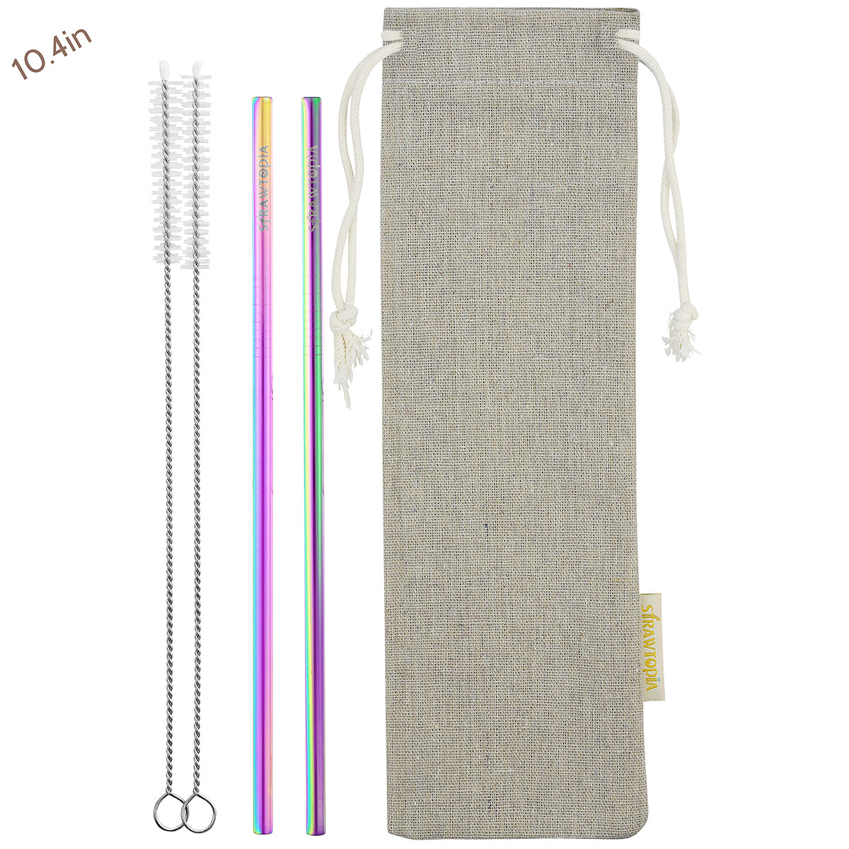 - 2 Straight (10.4 inches) Rainbow Reusable Metal Straws with Cleaning Brushes — STRAWTOPIA